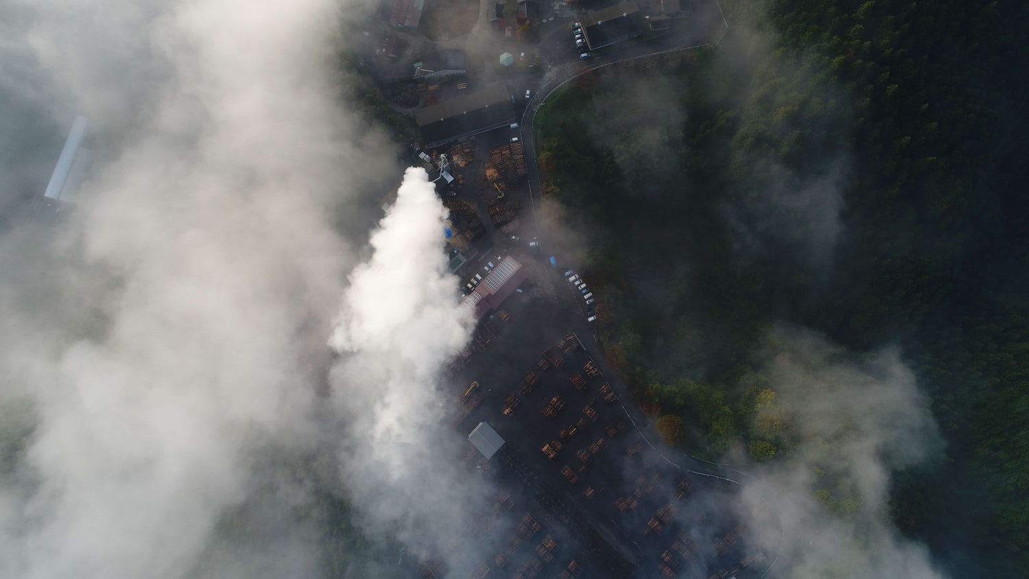 木材市場、林業事業者、バイオマス発電所などが隣接する林業団地。内子町が拠点です。