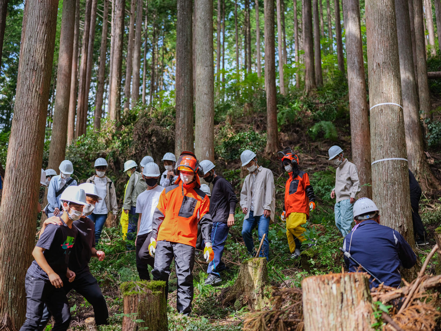 大学生・社会人などを素材生産から木材加工までを1日で体験する検討体験プログラムです。