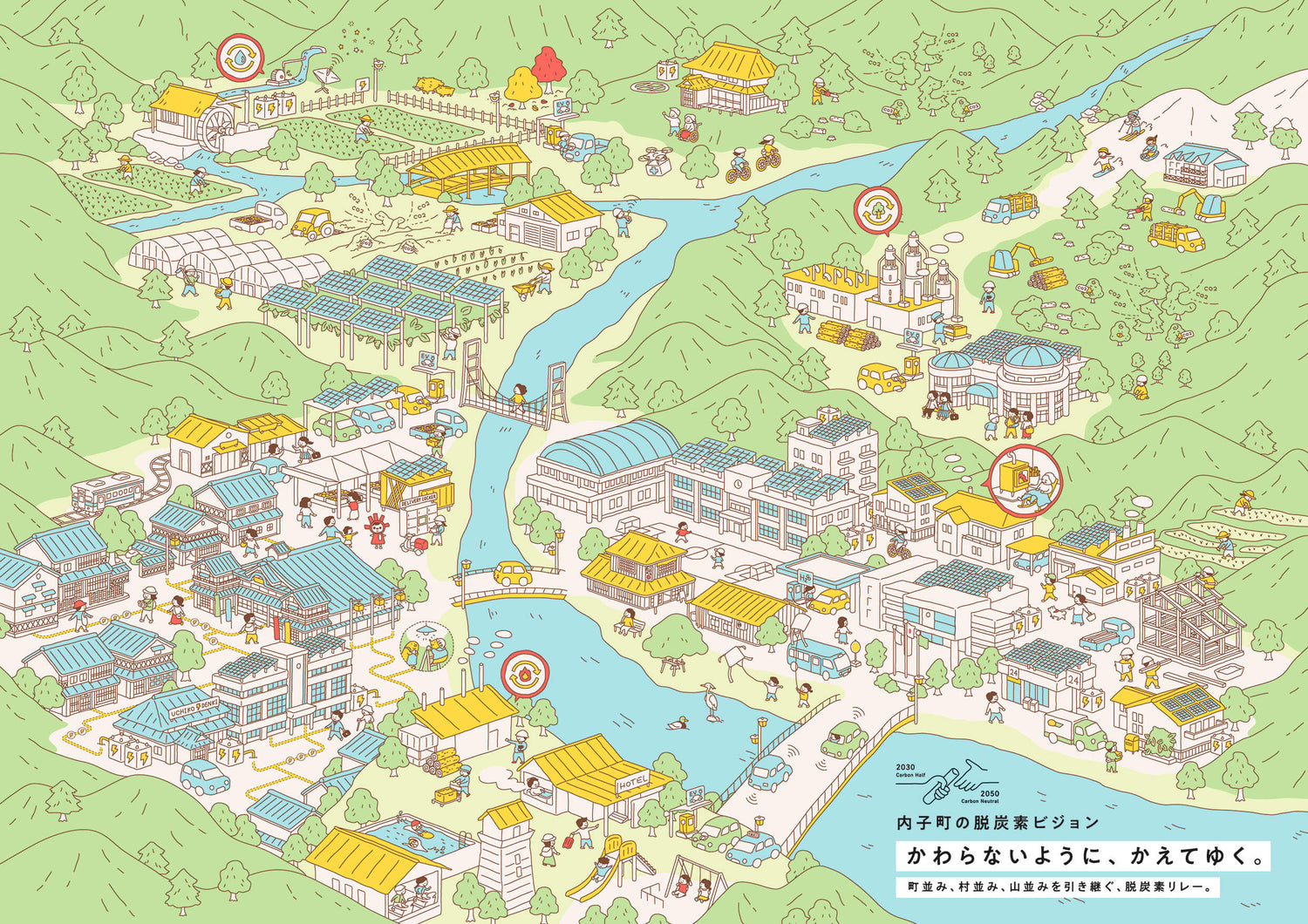 「町がえ探し」は、地域の脱炭素ビジョンを忘れ化した間違い探しゲームです。